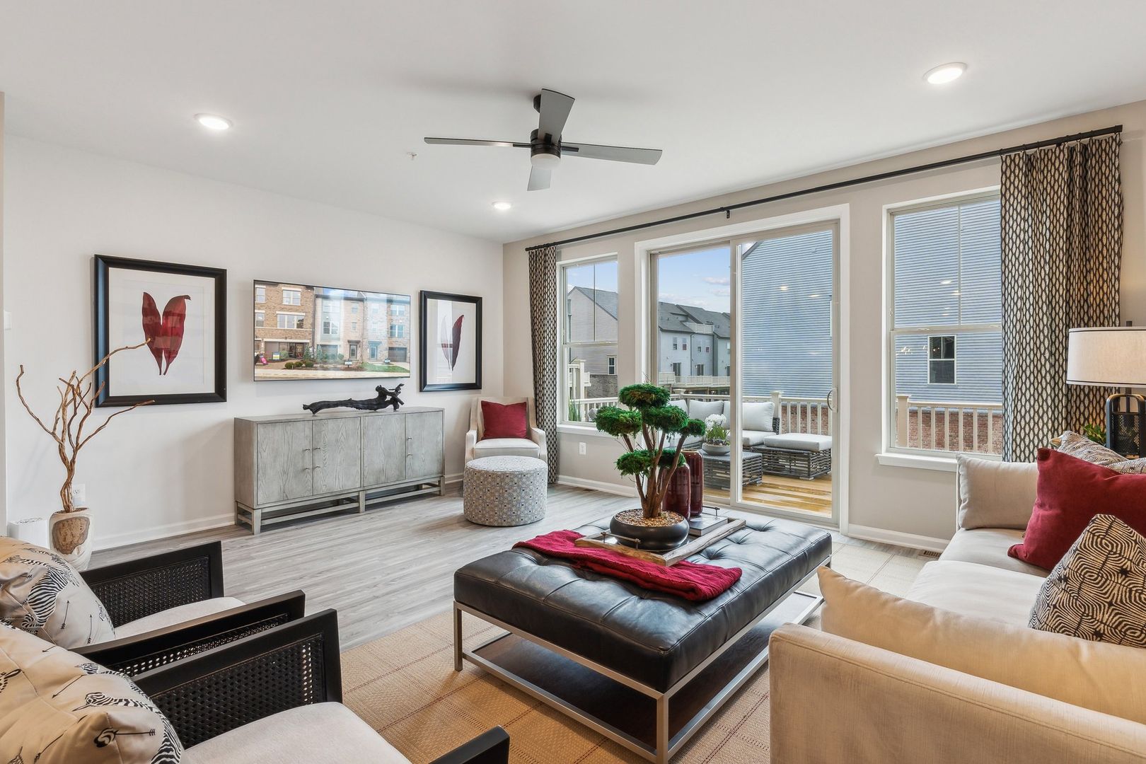 The Hartland demonstrates townhome living at its best. The main level of this home is one that most people dream of. The kitchen features a long wall of beautiful cabinetry and appliances and parallel is an impressive island with a sink, dishwasher, endless prep and cabinet space.